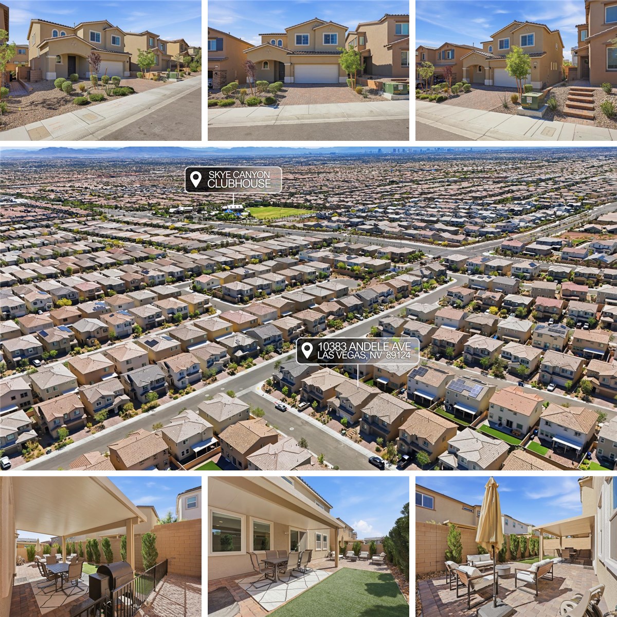 Stunning Upgraded Home heart of the highly desirable Skye Canyon community! Blending modern design with thoughtful upgrades for a truly luxurious living experience. Oversized island w/granite countertops and subway backsplash, large single-bowl undermount sink, upgraded cabinetry with sleek black hardware, & stainless-steel appliances. Open-Concept Living: Bright and airy main living area with beautiful tile flooring, views of backyard. Primary features two walk-in closets, a spacious dual vanity, and an expansive shower! 2-large secondary bedrooms! Finished backyard with an oversized patio cover, extra pavers, and low-maintenance synthetic grass - perfect for entertaining! Finished garage with epoxy floors! Skye Canyon offers an active lifestyle with unmatched amenities: Recreation Center with pool, spa, fitness area & gathering spaces. Tennis, basketball, pickleball courts, walking & biking trails, and parks. Minutes from Mt. Charleston, minutes from Red Rock Canyon, Move-in ready!!
