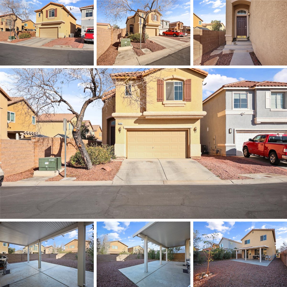 Charming cul de sac home featuring 3 bedrooms plus a loft and 2.5 baths. The kitchen offers Corian countertops, a breakfast bar, tile flooring, built in microwave, and a cozy breakfast nook. The generous living room showcases a cathedral ceiling and flows into the formal dining room, creating an open and inviting layout. The spacious backyard includes low maintenance landscaping and a large covered patio, perfect for outdoor enjoyment. The primary bedroom features a walk in closet, vaulted ceiling, separate tub and shower, and dual sinks. Secondary bedrooms are generously sized, each with its own walk in closet. Ceiling fans are located throughout the home for added comfort.