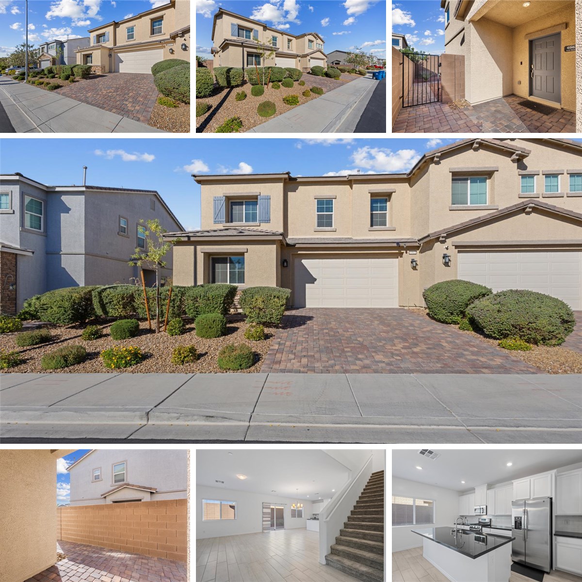 Stunning two-story townhome in North Las Vegas, where style, comfort, and convenience come together seamlessly. Boasting 4 bedrooms and 3 bathrooms, this home offers an ideal layout for modern living. Step inside to discover an inviting open-concept living area filled with natural light. The kitchen features an extra-large center island with bar seating, walk-in pantry, modern cabinetry, and quality stainless steel appliances with a layout that flows effortlessly into the dining and living spaces. The main floor offers a large downstairs bedroom, perfect for guests, or use as an office. Upstairs, you’ll find 3 additional bedrooms, including a luxurious primary suite with a walk-in closet and an ensuite bathroom. Outside, enjoy the ease of low-maintenance landscaping featuring pavers throughout the front and back yards—ideal for outdoor dining, relaxing, or entertaining. This home places you minutes away from everything you need—shopping centers, dining options, parks, and more.